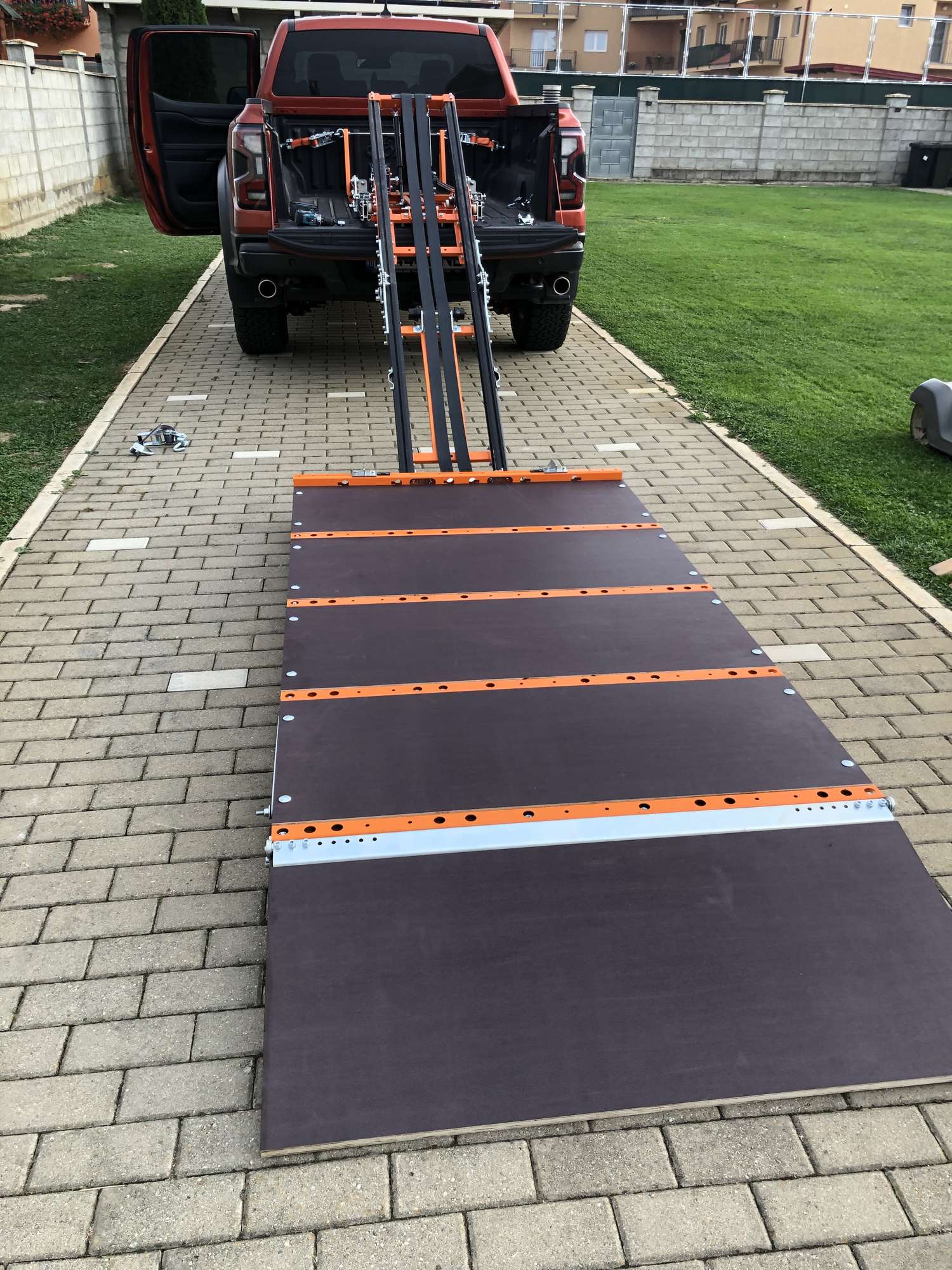 It is being delivered without a floor as clients can easily find a plywood or panel supplier if they need a floor. However, a floor is not needed if clients transport a jet ski for example.