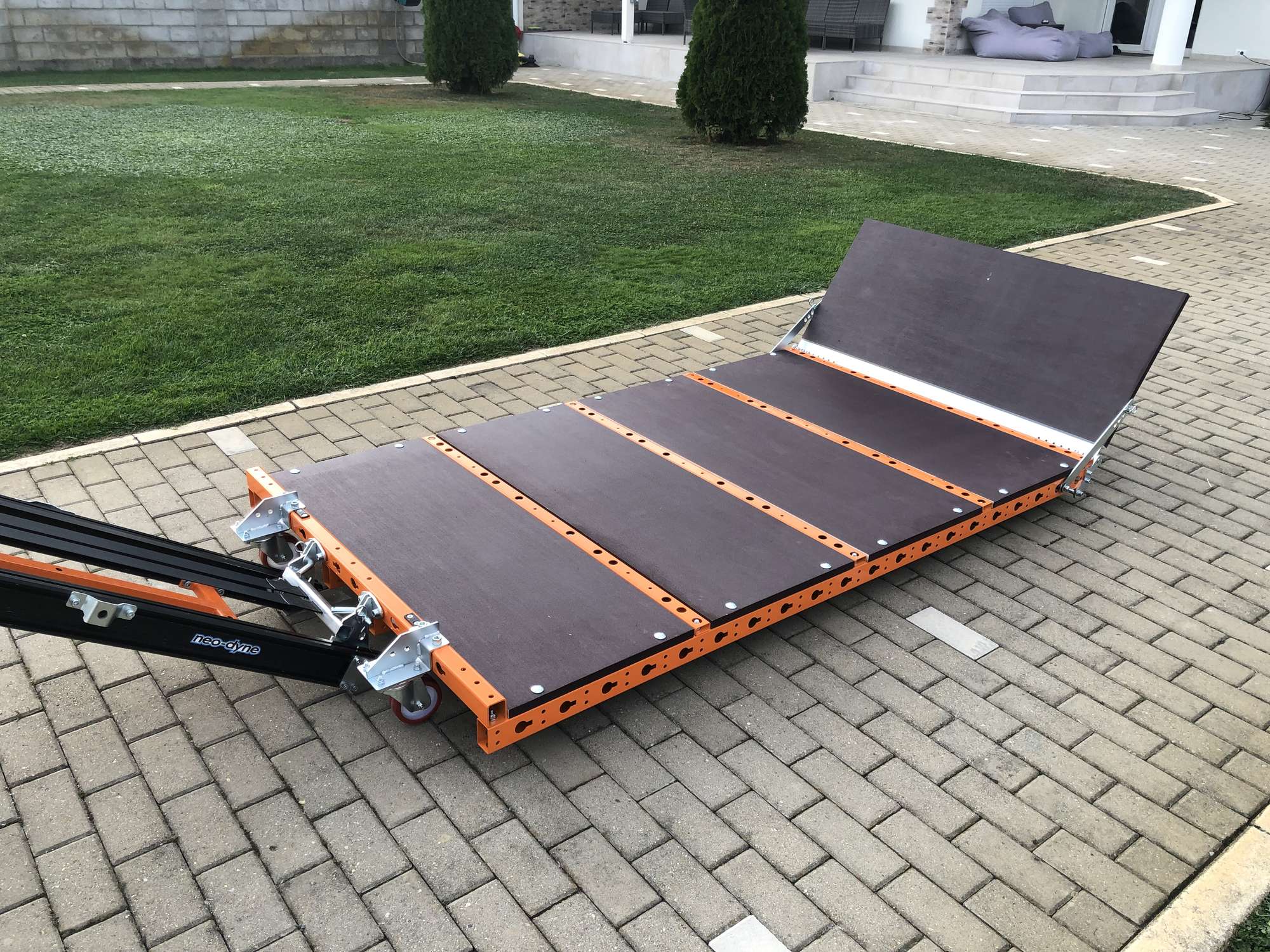 It is delivered as a kit and is compatible with AC 001, 003, and 004. During loading, the AC 008 sits flat on the ground. It can be converted into a container or a tiny camping unit.