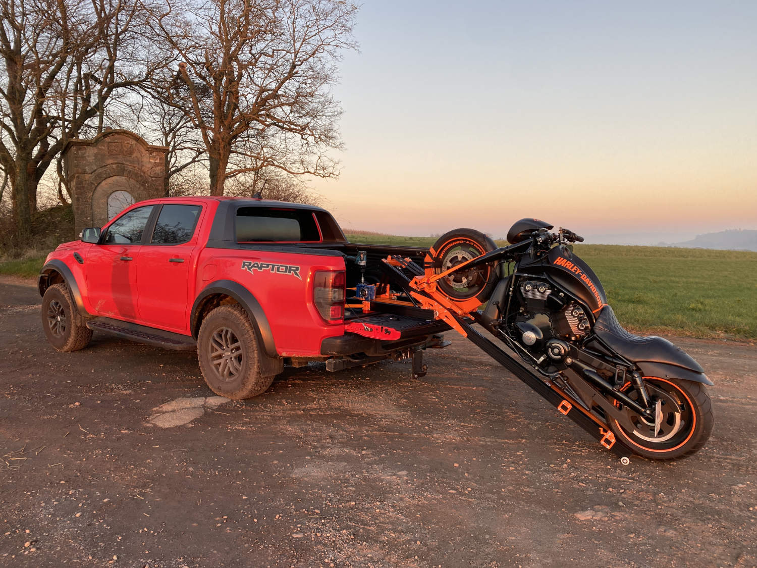The AUN 150 will reach down to load motorcycles from a height of 90cm. It can be equipped with extenders such as the AC 001 so that it can be used with loading heights up to 1,5 meters.