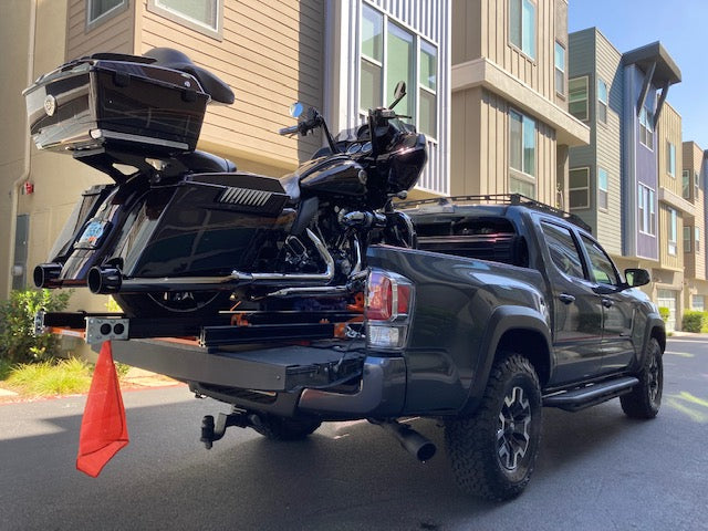 The shorter ramp can be cut to the exact length of the cargo bed with the tailgate down. Then it will work very well and it will even load bikes that are longer than the truck’s cargo bed with the tailgate down so that there is no overhang and no unnecessary load on the tailgate.