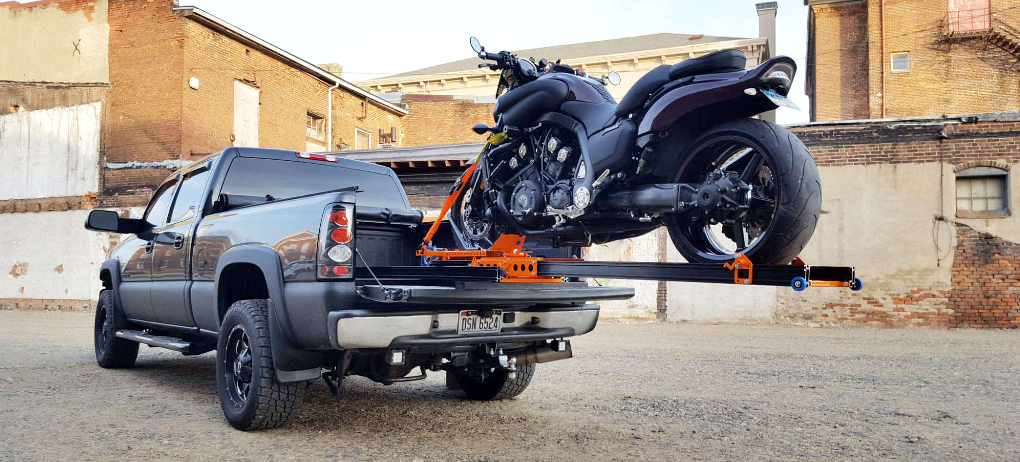 This is the standard-sized ramp (2500 mm) used to load motorcycles into standard pick-up trucks with a load height of 90cm and a cargo bed + tailgate down length of around 2.5 m. It will work on most standard trucks without any modifications. However, we do advise cutting the base ramp to match the length of the cargo bed + and tailgate down. The tilted ramp can stay as it is.