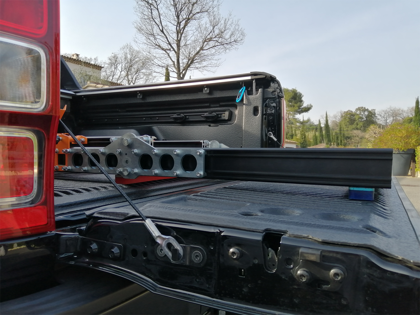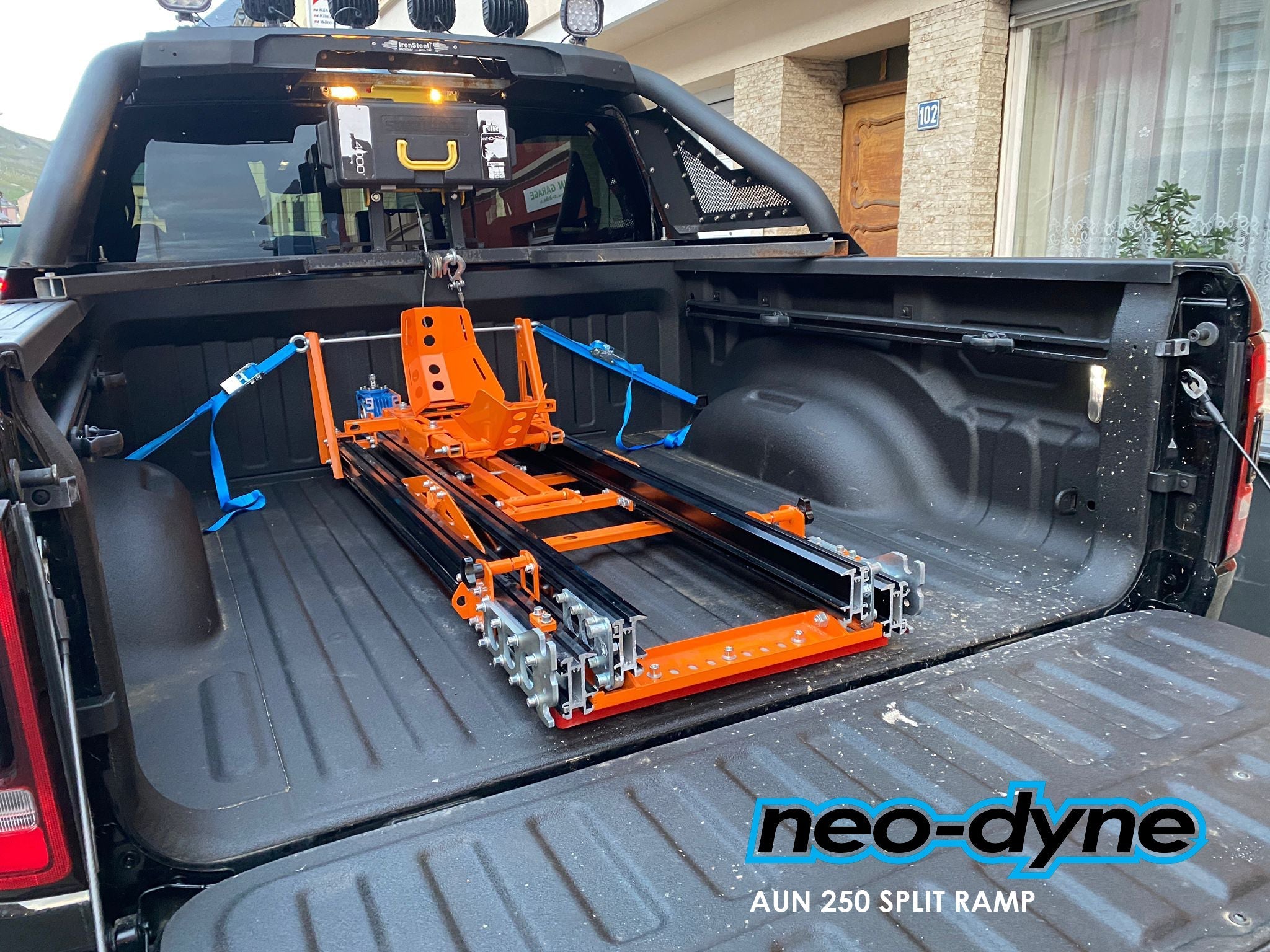 AUN-250 Split Kit ramp removable ramp. The two extensions connect to the main ramp in seconds without needing tools. Once the two extensions are removed, you can close the any tailgate with ease.