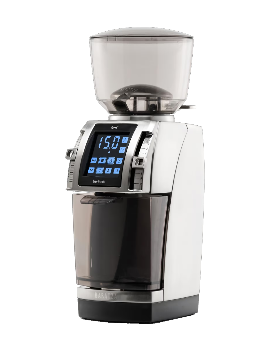 The Baratza Forté BG is designed for coarse brew methods with a commercial setting in mind. It’s a big step up from the Vario models thanks to the stainless housing and adjustment sliders, commercial grade components and touch screen operation.