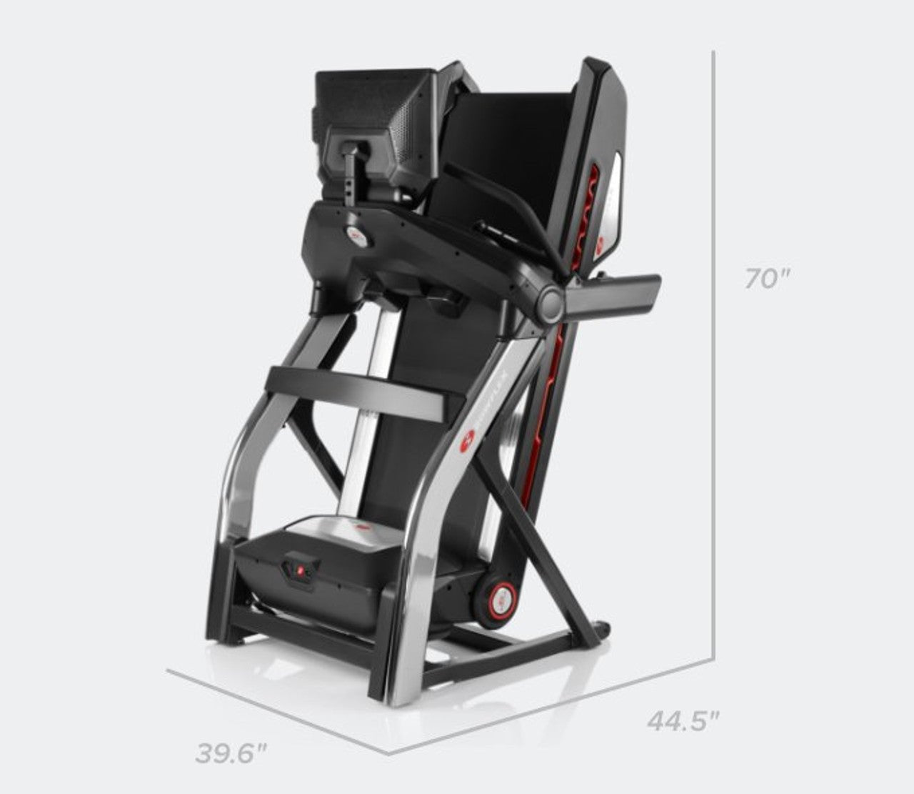 Bowflex Treadmill 22 Built-in JRNY™ experience (Membership required; Free 2-month trial included with purchase.)1 22″ immersive console Adjustable HD touchscreen (Wi-Fi connection required) 0 – 12 mph -5% – 20% motorized incline 22″ W x 60″ L running path Comfort Tech™ deck cushioning SoftDrop™ folding system Bluetooth® enabled for smart devices and heart rate monitors (Heart rate armband included) World-class cardio that fuels your runner’s high. The Treadmill 22 is our top-of-the-line cardio experience that provides the coaching, motivation, and variety you crave to keep you immersed in your fitness journey. High performance cardio from the comfort of home. Sky-high incline control. Elevate your running experience with -5% to 20% incline. Individualized workouts. Experience voice-coached workouts that automatically adapt as your running improves. JRNY Membership required. Explore the world. Hike, gallop, and sprint through 50+ scenic destinations around the planet. JRNY Membership required. Motivation for every mile. Experience curated workout and entertainment options that stream while you’re being coached. JRNY Membership required. Stream your favorite shows. Binge your existing Netflix, Hulu, Amazon Prime Video, and Disney+ accounts from the HD touchscreen. JRNY Membership required. Streaming subscriptions not included. Trainer-led video library. Sweat it out with a variety of trainers who inspire your very best effort. JRNY Membership required. Track metrics while torching milestones. Track your progress with metrics, rewards, and personal bests. JRNY Membership required. Pace your race with curated playlists. Discover an ever-changing lineup of new playlists. JRNY Membership required. Additional features of the Treadmill 22. Speed and Incline knobs. Adjust on the fly without breaking your stride. Comfort Tech™ deck cushioning. Provides a softer landing and an extra spring in your step. Speeds up to 12 mph. Challenge your pace by kicking it into higher gear. Heart rate hand grips. Stay within your primary heart rate zone. Adjustable HD touchscreen. Provides the perfect angle for every need. -5% – 20% Motorized Incline. For a fully elevated running experience. Extended handlebar grip. Provides a comfortable grip for maximum incline training. Bluetooth® HR armband. For advanced heart rate training and tracking. SoftDrop™ folding system. Safely reduces footprint by more than 40%. Warranty Info 15 Years Frame & Motor 5 Years Mechanical Parts 1 Year Electronics 2 Years Labor Specs & Dimensions Dimensions 85″ L x 39.6″ W x 70″ H 215.8 x 100.5 x 177.7 cm Max User Weight 400 lbs. 181.4 kg Assembled Weight 336 lbs. 152.4 kg Min Ceiling Height User Height + 21″ User Height + 53.3 cm Console w/ HD Touchscreen 22″ 55.9 cm 1 After the free JRNY™ Membership trial ends, your Membership will automatically renew monthly at then-current rates unless canceled at least 48 hours before the trial period ends. To manage or cancel, call 1-888-986-5528.