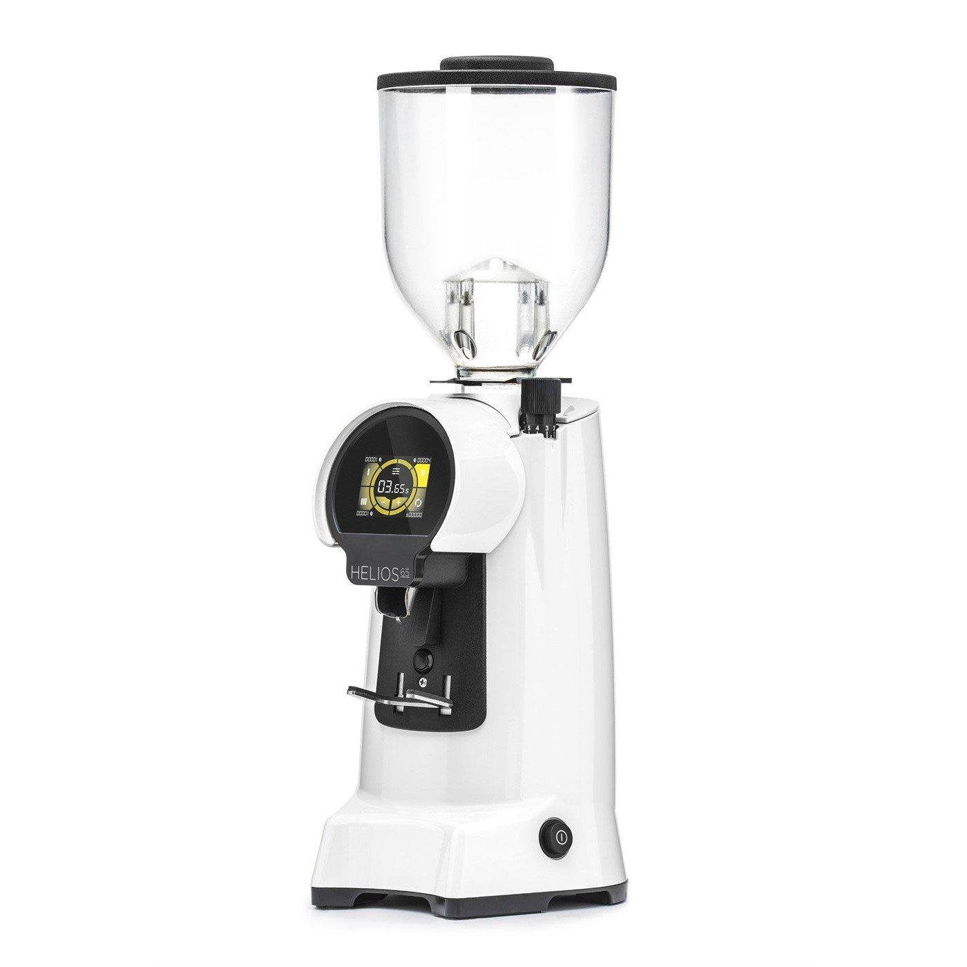 The Helios 65 is the high-tech grinder-helper you need for your cafe. Designed to streamline service during the busiest of days, the Helios 65 brings fast, repeatable grinding to your coffee shop with its 65mm burrs and vibrant touchscreen controls. The front-and-center touchscreen offers timed shot programming, usage stats, and burr life tracking to make sure your grinder is ready for your next morning rush. Other features—like an easy-cleaning grind chute and a bottom burr adjust for maintenance without losing your grind setting—also make the Helios a joy to work with on a daily basis.