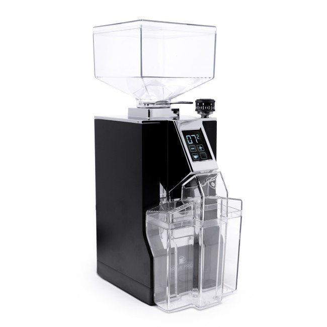 Brew your morning cup better than that corner cafe with the Eureka Brew Pro Coffee Grinder. Designed from the ground up just for drip coffee, the Brew Pro packs in a stack of features that make it a joy to use in day-to-day operation. A calibrated single rotation grind adjust and custom 55mm brew burrs make dialing in your filter coffee a breeze. Not that you’d notice, with the Pro’s sub 5-second grind time and sound-insulated case—it’s easy to miss. The Brew Pro design is finished with a dual-function timer, tritan plastic for the bean hopper and catch bin, and a nifty grind system that starts with a single tap.