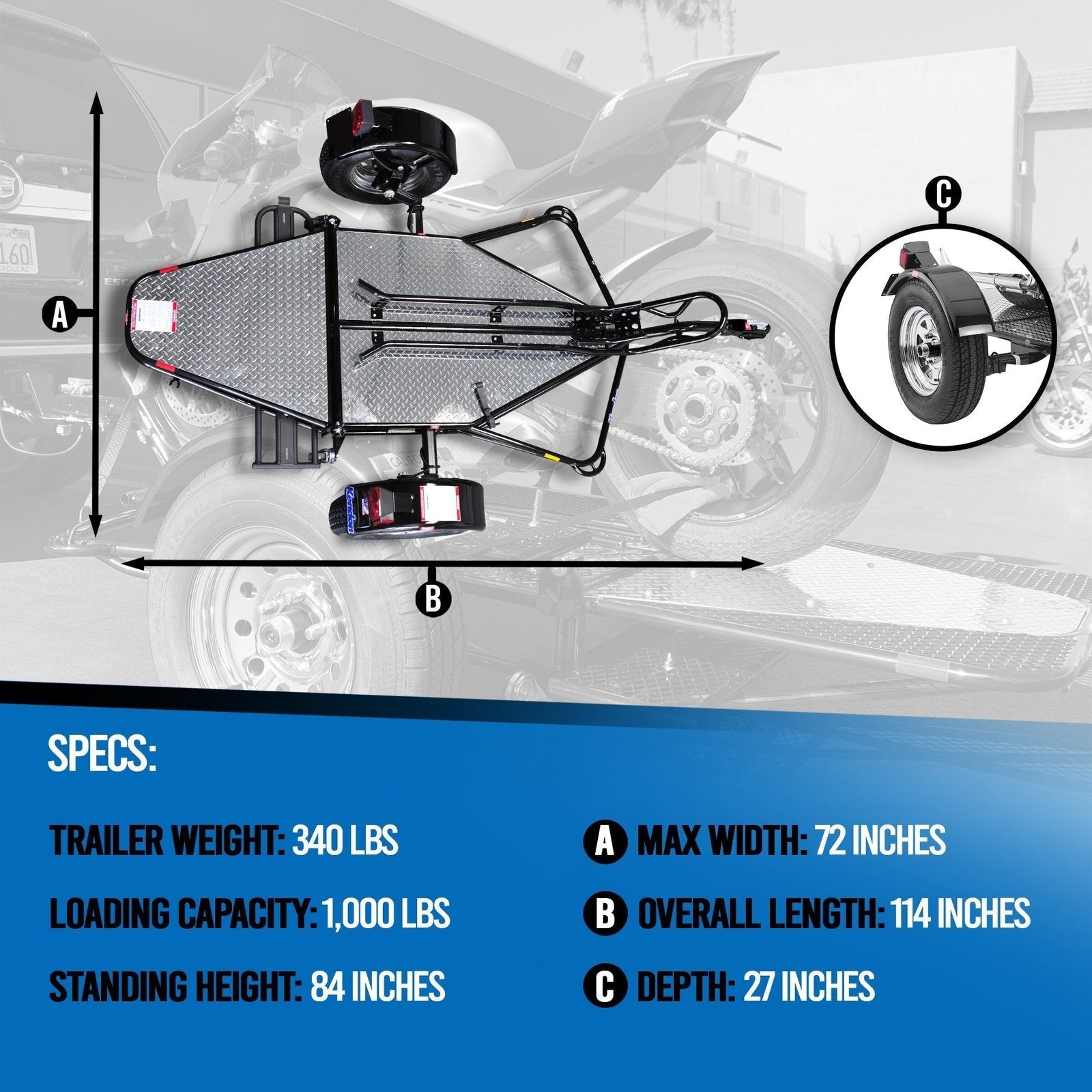 Go! Series Single-Rail Stand-Up™ Motorcycle Trailer Features