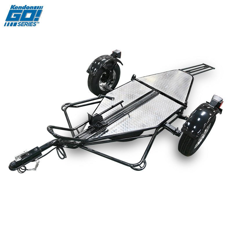 The Kendon Go! Single trailer features a wide diamond plate deck area designed to hold one full-size motorcycle such as Harley-Davidson, GoldWing, K1600, adventure bike, etc. When towing a motorcycle is not required, the trailer rail can be removed for general cargo towing. The heavy-duty independent torsion-bar axle and hub combination give the Go! Single bike trailer its true 1,000-lbs. load carrying capacity.