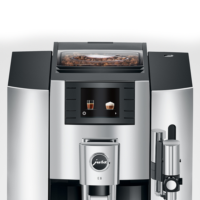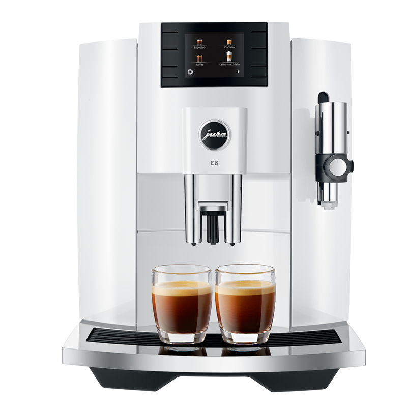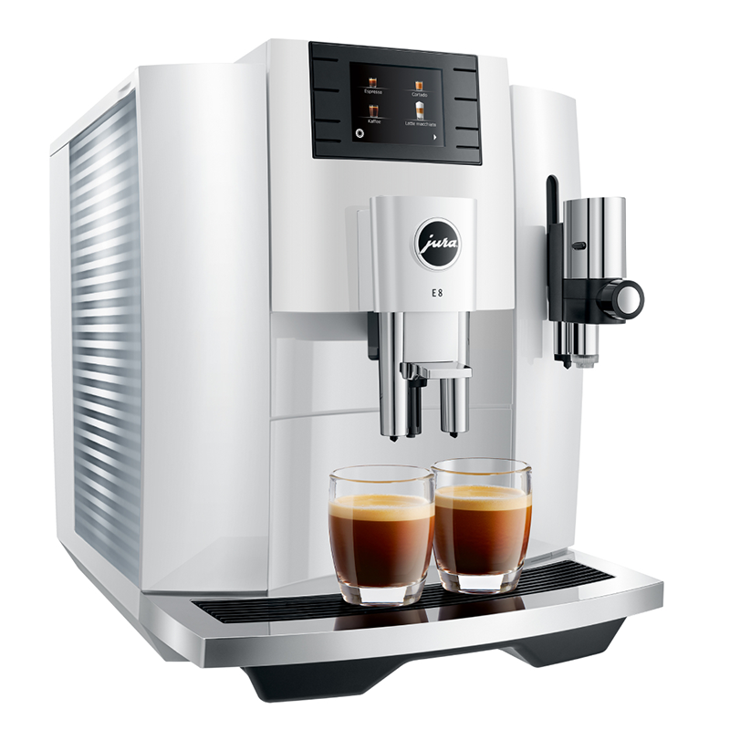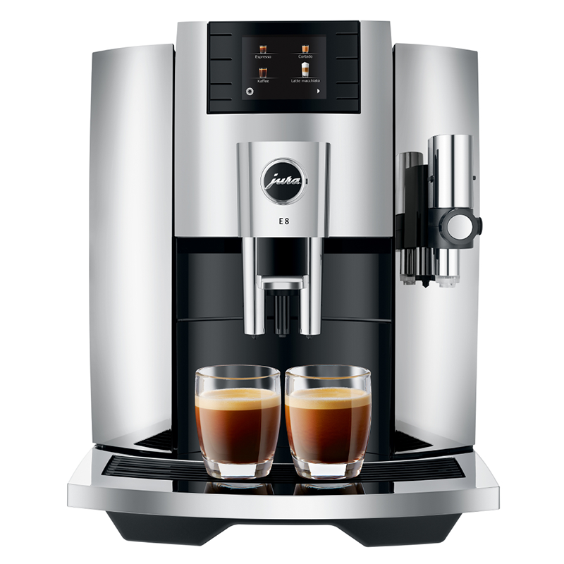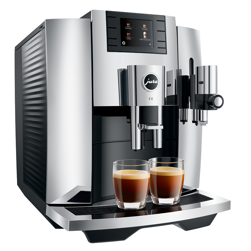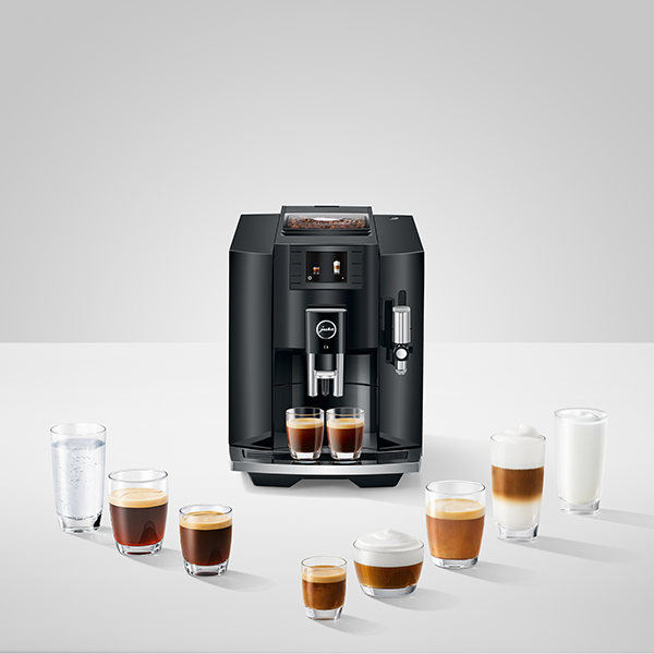 The new Jura E8 Automatic Coffee Center will now prepare 17 programmed specialties including 1 or 2 Espresso, 1 or 2 Coffee, Cappuccino, Cappuccino with Extra Shot, Caffè Barista, Americano, Espresso doppio, Macchiato, Cortado, Latte macchiato, Latte macchiato with Extra Shot, Flat white, Flat White with Extra Shot, Portion of milk foam and Lungo at a touch.