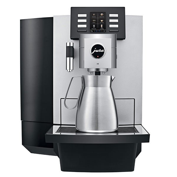 The Jura X8 Automatic Coffee Center is the robust, versatile, and professional coffee solution that your busy workplace needs. Premium design and a user-friendly touchscreen interface allows anyone to create individual specialty coffees, with milk and foam, as well as full cup and carafes of coffee for meetings. It also prepares hot water at different temperature levels, to optimize any type of tea brewing. The X8 is loaded with can-do attitude, and designed to keep the office buzzing with minimal upkeep.