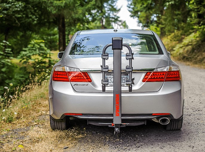 Light, strong, and hecka secure, the LiteRider aluminum hitch rack offers more cushion in the cradles, more zip in the strip, and an integrated lockable security cable to ensure that both bikes and riders can relax on the road. Easily installs on any 1.25″ or 2″ hitch receiver. Holds up to two bikes.