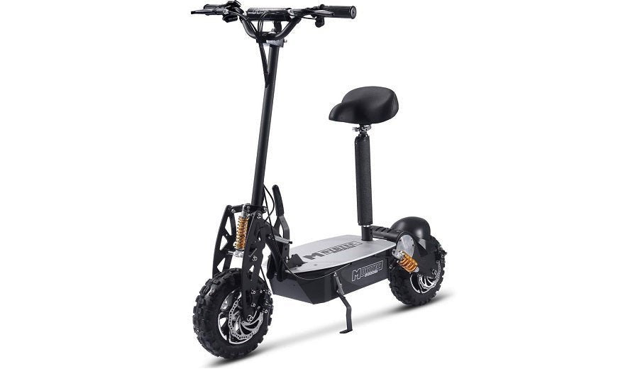 The MotoTec 2000 watt electric scooter MT-2000w_Black is the most powerful electric scooter we carry. Powered by 48 volts and a 2000 watt motor, there won’t be a hill you can’t conquer! Comes standard with a quick-release seat, foldable locking frame, large 11 inches knobby onroad/offroad tires, key ignition, and economy mode to conserve battery life for longer rides. This scooter does not disappoint!