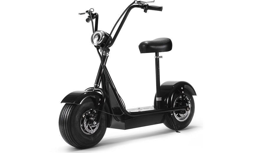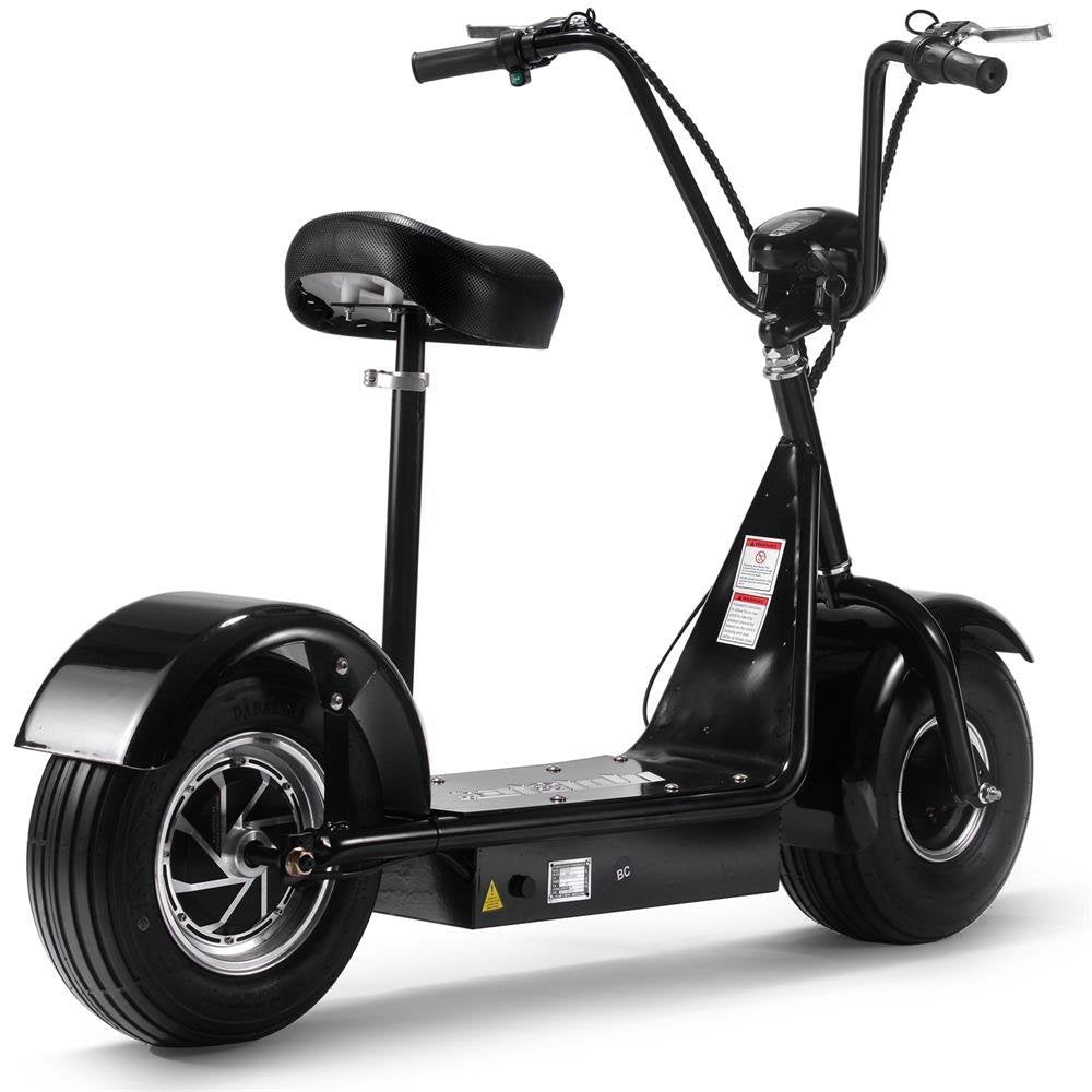The MotoTec FatBoy 48v 800w Electric Scooter MT-FatBoy-500 (aka the MotoTec Big Wheel and Fat Tire) packs an insane amount of fun into an economical package. Whether you’re riding for transportation or fun-filled adventures it gets you there in style. It sports a 48v battery system that takes you up to 15 miles on a single charge. The extra-wide cruiser handlebars allow for easy turning and the optional seat kit lets you cruise while standing or sitting down. The thick tires let you tackle all sorts of terrain while providing a smooth and steady ride.