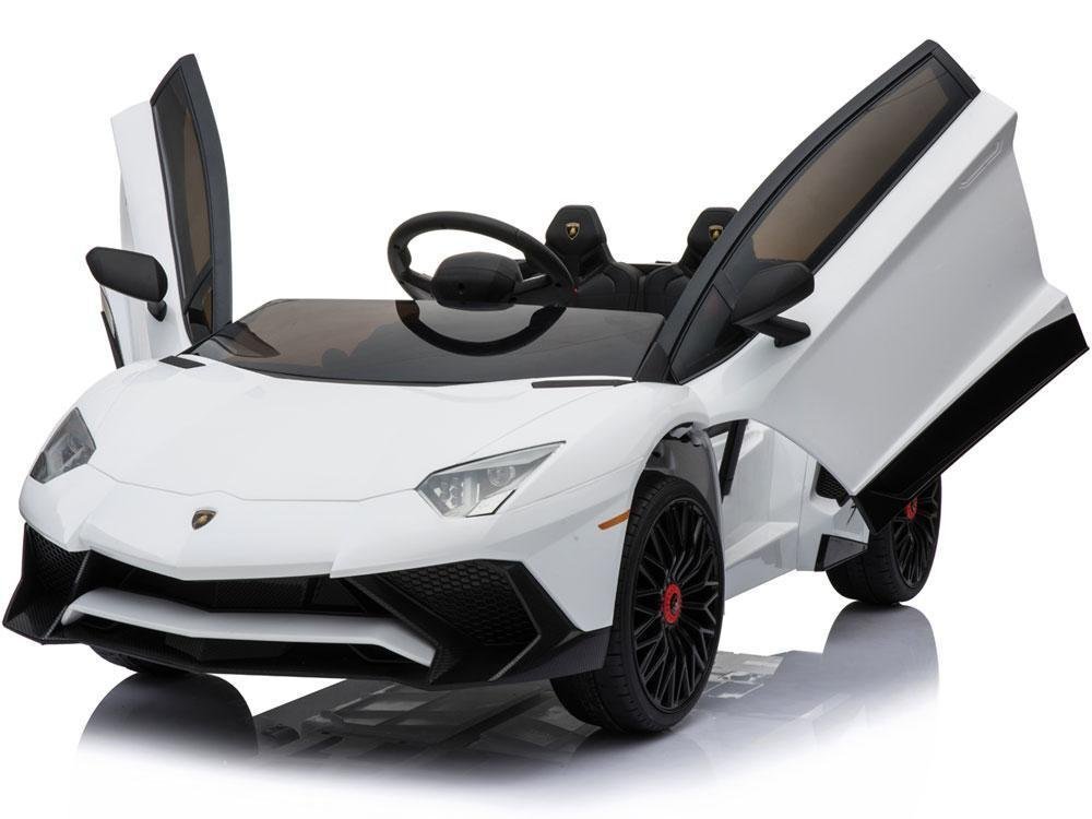 Cruise in style with the Mini Moto 12v Lamborghini, be the most popular kid in the neighborhood! Features Include Opening Wing Doors, 2.4ghz Remote Control, EVA Tires, Leather Seat, Push Button Start, USB, TF Card Socket, MP3 Port, Radio, Seat Belt, 4 Wheel Suspension and Working Lights.