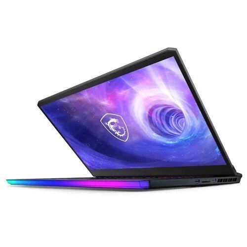 MSI 17.3″ Raider GE76 Gaming Laptop (Titanium Blue) The 17.3″ Raider GE76 Gaming Laptop in titanium blue from MSI. Boasting powerful internals to muscle through demanding titles, this gaminglaptop boasts an NVIDIA GeForce RTX 3080 Ti graphics card with ray-tracing and NVIDIA DLSS for immersive performance in a portable design. Additionally, this laptop utilizes a detailed 17.3″ 3840 x 2160 LCD display with a 120 Hz refresh rate, thin bezels, and 100% Adobe RGB coverage. Tackle opponents or heavy workloads with a 12th Gen 1.8 GHz Intel Core i9 14-core processor and 32GB of DDR5 RAM. Plus, use the 1TB PCIe M.2 SSD to store games and apps and launch them in a flash. Find critical keys even in dim light with a built-in SteelSeries keyboard featuring per-key RGB backlighting and accent lighting. Connect to wired accessories via a USB 3.2 Gen 2 and two Gen 1 Type-A ports, as well as Thunderbolt 4 and USB 3.2 Gen 2 Type-C ports with DisplayPort Alt Mode. Or, pair to wireless peripherals via Bluetooth 5.2. Get fast networking with Wi-Fi 6E or an RJ45 port supporting 2.5 Gigabit Ethernet. An integrated Full HD webcam keeps you connected to friends and teammates. Heighten your immersion with a Dynaudio sound system comprised of dual 2W speakers and a pair of 1W subwoofers. Or, bring space and directional cues to your headphones with Nahimic virtual surround sound. The MSI 17.3″ Raider GE76 Gaming Laptop runs on the Windows 11 Home 64-bit operating system. Multi-Core Performance A 12th Gen 1.8 GHz Intel Core i9 14-core processor and 32GB of DDR5 RAM deliver strong processing power so you can tackle demanding creative projects or get lost in intricate virtual worlds. NVIDIA GeForce RTX 3080 Ti An NVIDIA GeForce RTX 3080 Ti built with Ampere-NVIDIA’s 2nd gen RTX architecture provides realistic ray-traced graphics and AI features like NVIDIA DLSS. Plus, Max-Q Technologies unleash the power of AI to ensure fast performance in a thin and light build. NVIDIA DLSS NVIDIA DLSS gives games a speed boost with uncompromised image quality. Crank up the settings and resolution for an even better visual experience. More Immersion Ray tracing simulates how light behaves in the real world to produce the most realistic and immersive graphics for gamers and creators. And, thanks to 2nd gen RT Cores, this heightened realism won’t slow down your machine. Max-Q Technologies Max-Q technologies use AI to optimize your system’s CPU, GPU, GPU memory, and more for optimum performance. Supports Multiple Displays Connect to external monitors and output video via HDMI, mini DisplayPort, Thunderbolt 4, and USB Type-C via DisplayPort Alt Mode. True Color Technology MSI True Color Technology provides different modes to best fit your usage scenario. Robust Onboard Audio A Dynaudio sound system features dual 2W speakers and dual 1W woofers and is compatible with high-res audio. What’s more, Nahimic virtual surround sound brings directional sound and atmosphere to your headphones. RGB Accent and Backlighting Choose the color that sets your vibe with MSI Mystic Light. In addition to a SteelSeries per-key RGB keyboard, this laptop also sports accent lighting. Day to Night Battery Get longer runtime with a 99.9Whr battery capacity. Thunderbolt 4 Connectivity Utilizing the USB Type-C connector, the Thunderbolt 4 interface supports high-speed data transfer, power delivery, and daisy chaining. Wi-Fi 6E Wi-Fi 6E delivers smooth and stable connections, even when sharing the network with numerous users. MSI Center MSI Center helps you control and customize your laptop the way you want. Console Mode Console Mode provides a console-like experience on your laptop via an intuitive design and a compatible wireless game controller. USB 3.2 Gen 2 Doubling the speed of its predecessor, USB 3.2 Gen 2 features a maximum throughput of 10 Gb/s when used with compatible devices and is synonymous with USB 3.1 Gen 2. Window 11 Home A New Start Position Windows 11 has been completely redesigned from its predecessor to emphasize productivity, creativity, and ease of use. The customizable Start Menu is now at the center of the taskbar and utilizes the cloud, allowing you to quickly find and access recent files, regardless of what platform or device was previously used to view them. The streamlined Start Menu design also lets you pin apps and recent files in addition to powering down the system. Making Productivity a Snap Multitask quickly and efficiently with the ability to snap apps side-by-side. Snap Layouts and Snap Groups keep your windows organized using different layouts designed to fully optimize your screen space, no matter its size and resolution. Windows 11 also remembers their positions, so you can resume where you left off when selecting Snap Groups from the task bar, allowing you to switch between both individual applications and entire projects. Snap Layouts are also automatically restored when docking laptops with external monitors. Microsoft Teams Integration Stay connected with friends, family, co-workers, and clients with Microsoft Teams Chat integrated onto the Windows 11 taskbar. With a touch, you can connect to your contacts via text, voice, and video, regardless of whether they’re using Windows, Android, or iOS devices. You can also communicate with those who don’t have the Teams app installed using two-way SMS messaging. Adapting to You The Adaptive Input feature automatically optimizes the Windows 11 interface to however you prefer to interact with your device, whether it’s using a mouse, keyboard, touch, voice, or handwriting. Next Level Gaming Enjoy smooth, immersive gaming experiences with DirectX 12 Ultimate providing realistic graphics at high frame rates while Auto HDR automatically adjusts in-game lighting and contrast for high-dynamic range. DirectStorage technology streamlines data access via high-speed devices such as NVMe SSDs and graphics cards without taxing the CPU, minimizing load times and reducing