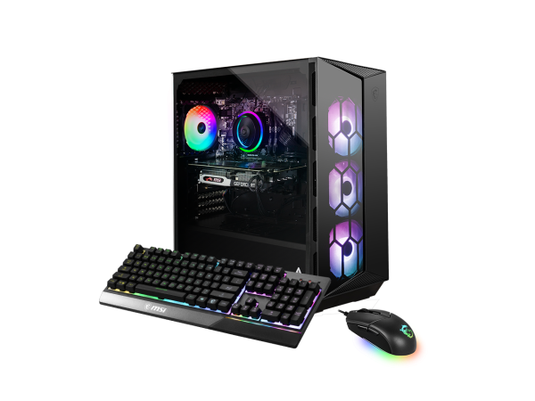 MSI AEGIS RS 11TC-405US Gaming Desktop Computer MSI AEGIS RS 11TC-405US Gaming Desktop Computer. This high-performance desktop computer system is equipped with an air-cooled 11th Gen Intel Core i5 six-core processor and 16GB of 3200 MHz DDR4 RAM to smoothly run and multitask demanding games and applications. It also includes an NVIDIA GeForce RTX 3060 graphics card, which is designed to deliver high-frame rates while providing advanced features such as real-time ray tracing, artificial intelligence, and more. With its 1TB M.2 NVMe PCIe solid-state drive, the AEGIS RS has fast boot and load times. Additionally, the Wi-Fi 5 (802.11ac) and 2.5 Gigabit Ethernet port both allow you to connect to compatible networks for smooth 4K video streaming, online games, and video chatting performance. The Aegis RS includes a wired USB keyboard and mouse, so all you need is a separate monitor to get straight to playing. Windows 11 Home is the installed operating system. MSI Aegis RS Packed with Power The MSI Aegis RS features an ARGB air-cooled 11th Gen 2.6 GHz Intel Core i5-11400F six-core processor, 16GB of DDR4 RAM, and a fast 1TB M.2 NVMe PCIe solid-state drive, which allow for fast boot and load times. High Impact Graphics The NVIDIA GeForce RTX 3060 graphics card is designed to deliver high frame rates for both fast-paced action games and expansive role-playing games in addition to providing advanced features such as real-time ray tracing, artificial intelligence, Variable Rate Shading, and more. Air ARGB CPU Cooling The Air ARGB CPU cooler helps to ensure that the system maintains optimal temperatures, even as the competition heats up. Gaming Peripherals An MSI gaming keyboard and mouse are included. Display Outputs The Aegis RS includes three DisplayPort outputs and an HDMI port, allowing you to connect up to four monitors. RGB Lighting Press the MSI LED button to customize the built-in RGB lighting with a variety of dazzling effects to enhance your gaming experience to suit your style, mood, or game. Windows 11 A New Start Position Windows 11 has been completely redesigned from its predecessor to emphasize productivity, creativity, and ease of use. The customizable Start Menu is now at the center of the taskbar and utilizes the cloud, allowing you to quickly find and access recent files, regardless of what platform or device was previously used to view them. The streamlined Start Menu design also lets you pin apps and recent files in addition to powering down the system. Making Productivity a Snap Multitask with speed and efficiency with the ability to snap apps side by side. Snap Layouts and Snap Groups help to keep your windows organized using different layouts that are designed to fully optimize your screen space, no matter its size and resolution. Windows 11 also remembers their positions, so you can resume from where you left off when selecting Snap Groups from the task bar, allowing you to switch between both individual applications and entire projects. Snap Layouts are also automatically restored when docking laptops with external monitors. Microsoft Teams Integration Stay connected with friends, family, coworkers, and clients with Microsoft Teams Chat integrated onto the Windows 11 taskbar. With a touch, you can connect to your contacts via text, voice, and video, regardless of whether they’re using Windows, Android, or iOS devices. You can also communicate with those who don’t have the Teams app installed using two-way SMS messaging. Adapting to You The Adaptive Input feature automatically optimizes the Windows 11 interface to however you prefer to interact with your device, whether it’s using a mouse, keyboard, touch, voice, or handwriting. Next Level Gaming Windows 11 is designed to deliver smooth, immersive gaming experiences with DirectX 12 Ultimate providing realistic graphics at high frame rates while Auto HDR automatically adjusts your game’s lighting and contrast for high dynamic range. DirectStorage technology streamlines data access to better take advantage of high-speed devices such as NVMe solid-state drives and directly from graphics cards without dragging down the CPU, which minimizes load times while helping to reduce artifacts such as texture popping. Topping it all off is Xbox Game Pass integration, which provides you with access to a massive library of games with a membership subscription. Redesigned Microsoft Store The Microsoft Store is rebuilt from the ground up for a streamlined experience when looking for content such as apps, games, movies, and shows. Apps downloaded from the Store have been tested for security and family safety. Android apps will also be available on the Microsoft Store through the Amazon Appstore and can be used directly on your PC from the taskbar or Start Menu. Brands MSI Operating System Windows 11 Home Performance Chipset Intel Z490 Processor Intel Core i5-11400F (11th Gen) CPU 2.6 to 4.4 GHz 6-Core L3 Cache 12 MB Graphics Type Dedicated GPU NVIDIA GeForce RTX 3060 with 8 GB GDDR6 VRAM Memory Type 3200 MHz DDR4 Total Installed Memory 16 GB Memory Configuration 2 x 8 GB (User-Replaceable) Memory Slot Type 288-Pin DIMM Buffered Memory No ECC Memory No Storage and Expansion Total Drive Bays 2 x 2.5″ (Internal)2 x 2.5/3.5″ (External) SSD Slots 1 x M.2 PCIe 4.0 x41 x M.2 SATA / PCIe 4.0 x4 Total Installed Capacity 1 TB Solid State Storage 1 x 1 TB M.2 NVMe PCIe PCI Expansion 1 x PCIe 4.0 x163 x PCIe 3.0 x16 [x1 Mechanical] Optical Drive None I/O Ports 2 x USB-A 3.1/3.2 Gen 24 x USB-A 3.0 / 3.1/3.2 Gen 12 x USB-A 2.0 Display 1 x HDMI 2.13 x DisplayPort 1.4a Audio I/O 1 x 1/8″ / 3.5 mm Headphone Output1 x 1/8″ / 3.5 mm Microphone Input Built-In Speakers None Built-In Microphones None Media/Memory Card Slot None Communications Ethernet 1 x RJ45 (2.5GbE) Wi-Fi Wi-Fi 5 (802.11ac) MU-MIMO Support None Bluetooth 5.0 NFC No Keyboard & Mouse Keyboard Full-Size Keyboard Pointing Device USB Mouse General Power Supply 550 W with IEC Dimensio