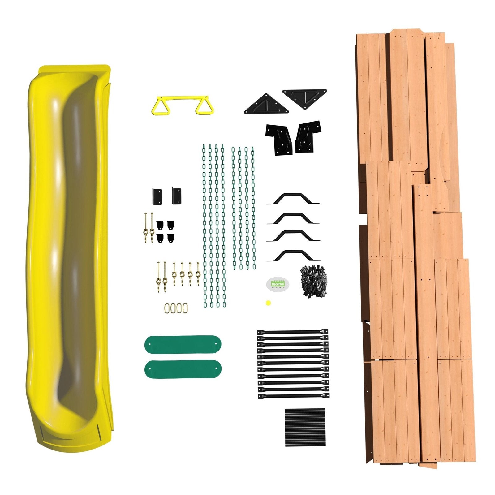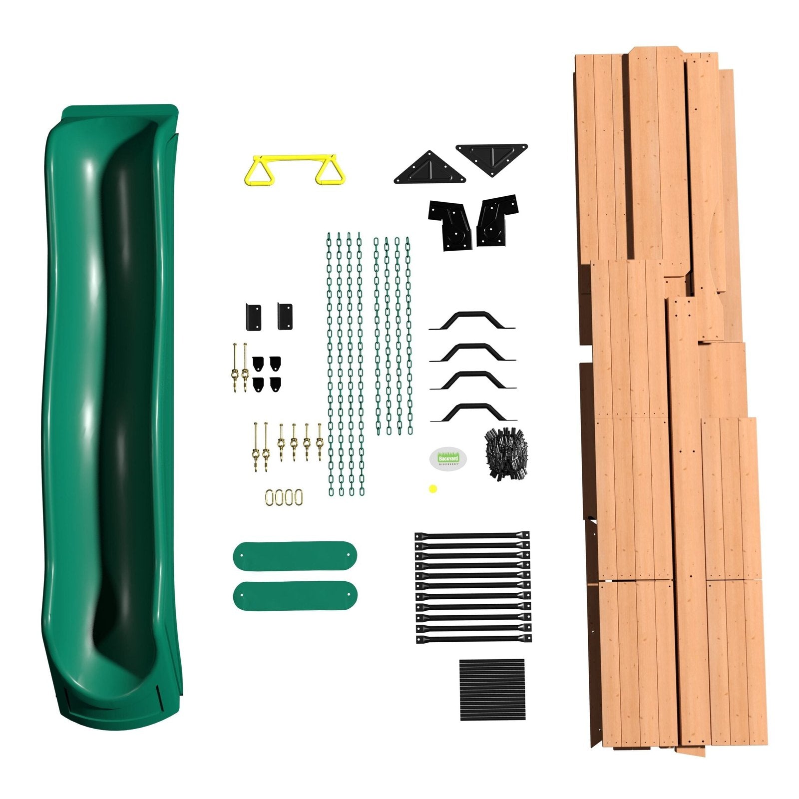 Beach house styling and plenty of room to play make our Oceanview Swing Set a great choice for your backyard. The large clubhouse can be reached by the awesome staircase, monkey bars, or flat step ladder and has a cabana look with its large window areas and curtains. Plus, the hammock gives it a fun […]