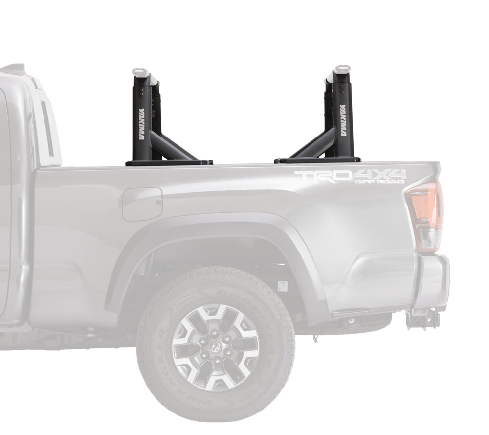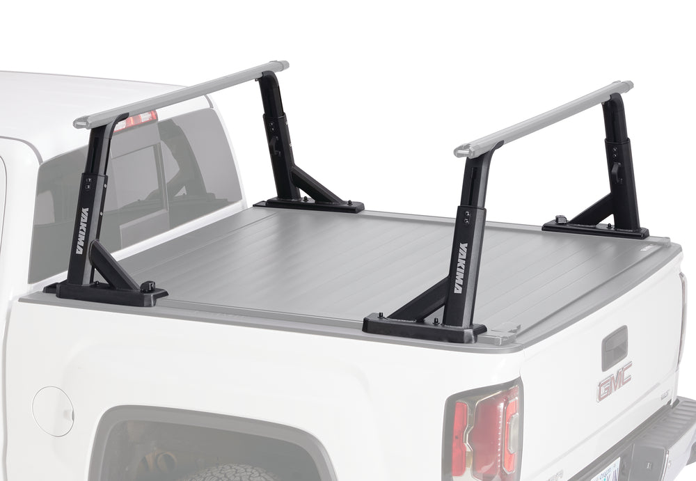 For weekend adventures and hardworking weekdays, the OverHaul HD adjustable truck rack offers best-in-class payload and unmatched versatility. Leveraging our HD Bars for a 500-lb. on-road carrying capacity, and Yakima’s 300-lb. Off-Road Rating, it’s the ideal foundation for heavy loads. The crossbar height can be adjusted to suit your needs: way up, for long loads to go over the cab—or down low, to get the rack out of the wind. The uprights are easy to take on and off in minutes, so the truck’s only racked-up when needed. Compatible with all HD Crossbar sizes (sold separately) and SideBars™ for attaching off-road and utility accessories. Multiple tie-down points and the ability to fit most truck beds—including select tonneau covers—make this an ultra-functional rack that works and plays as hard as you do.