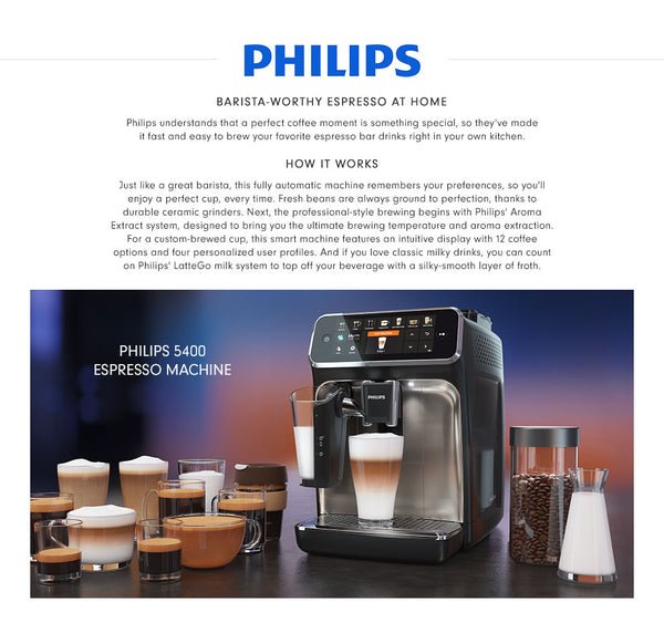 - LatteGo frother attachment creates silky-smooth steamed milk with ease.