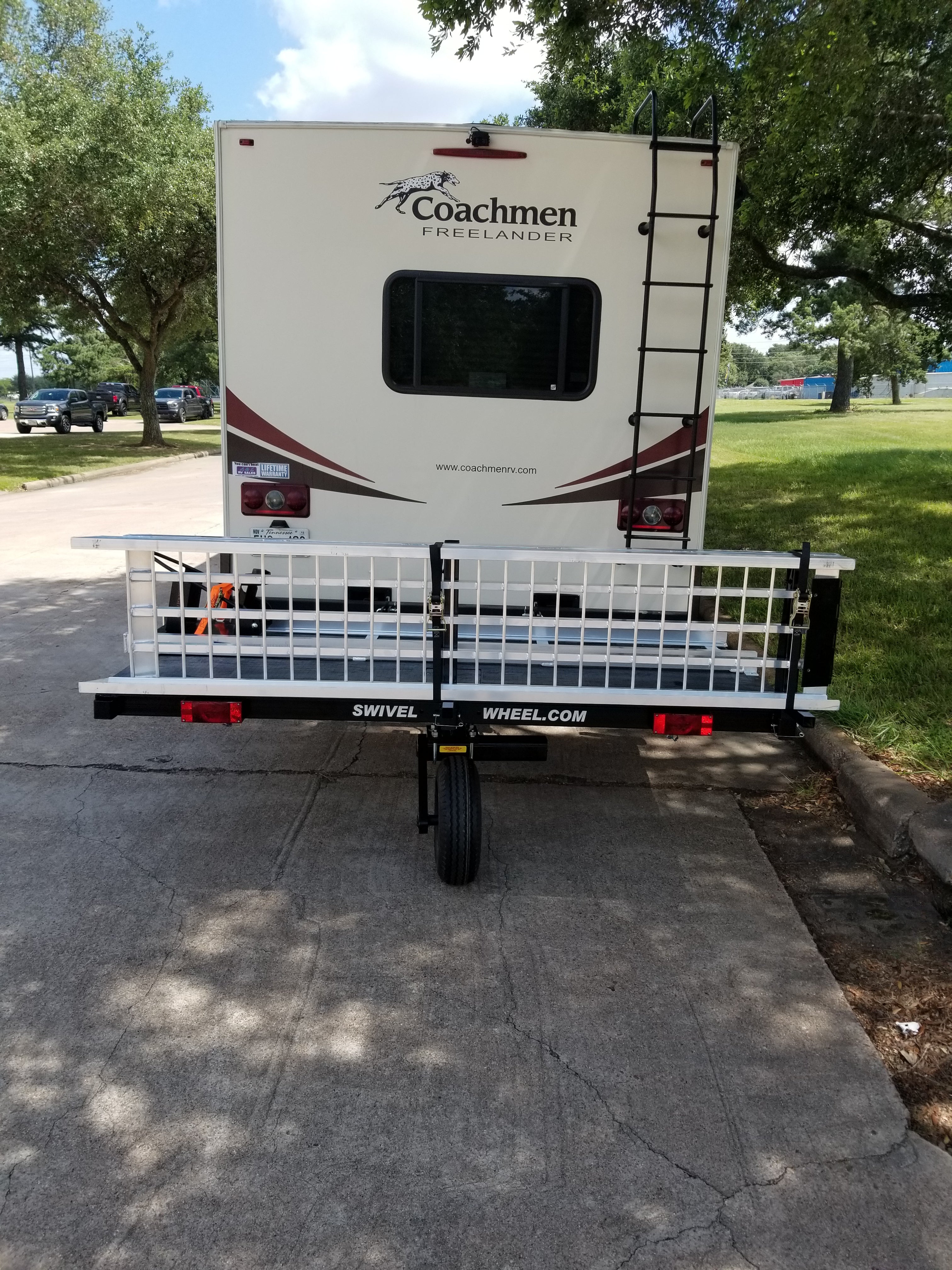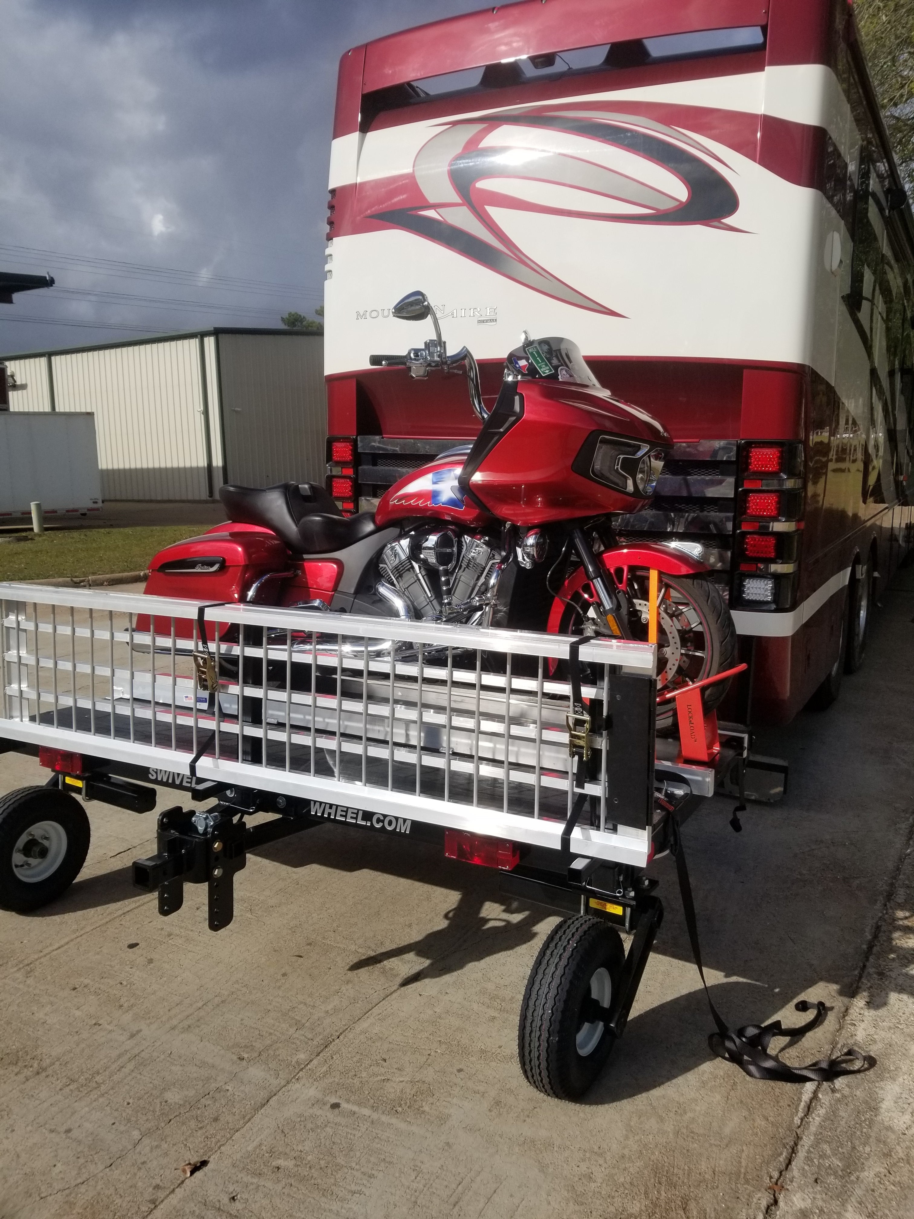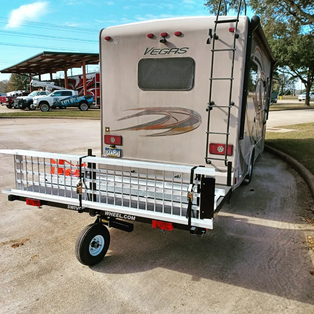 IN STOCK Â The Power Ramp is another option for the Swivelwheel 58 Systems series only. This option is an inexpensive way to load your bike without having to use a winch and having to draw power from your fifth wheel or motor home. The motorcycle is the power source. No more worrying about balancing […]