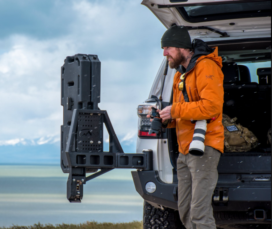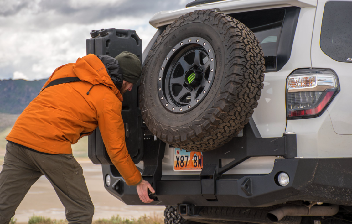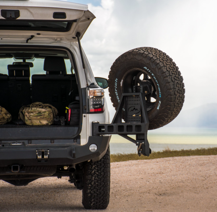 ne of its Kind Dual Swing-Out design for the 5th Gen 4 Runner 2010+ An industry-first latch mechanism and swing motion design keep things tight and rattle-free during extended or strenuous off-road adventures. Specifications Comprised of 3/16″ and 1/4″ inner structure and a 3/16″ thick outer skin  Approximate weight 250lbs 1″ thick 3/4 recovery shackle […]