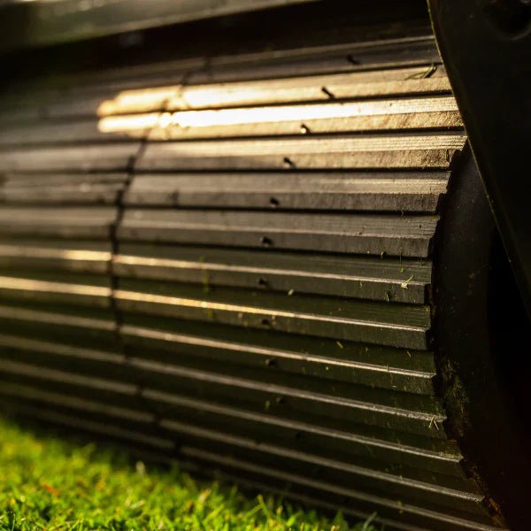 - The vulcanized rear rollers are ribbed to provide excellent grip without damaging the lawn. These rollers on the Rolux Cylinder Mower are mounted on heavy duty ball bearings to minimize maintenance and increase ease of use.