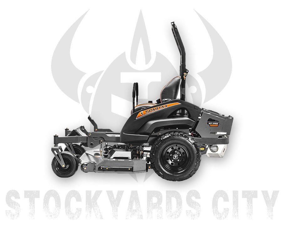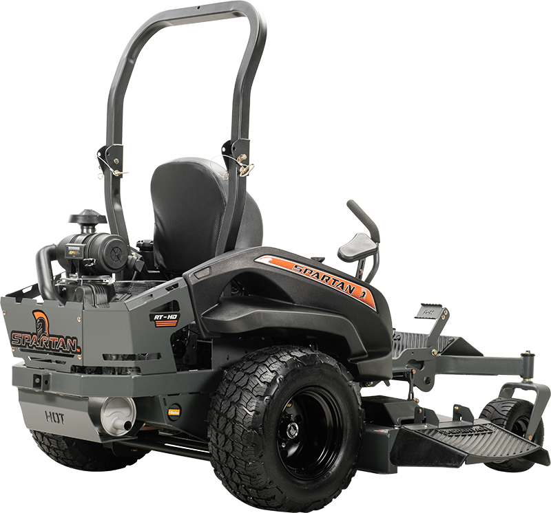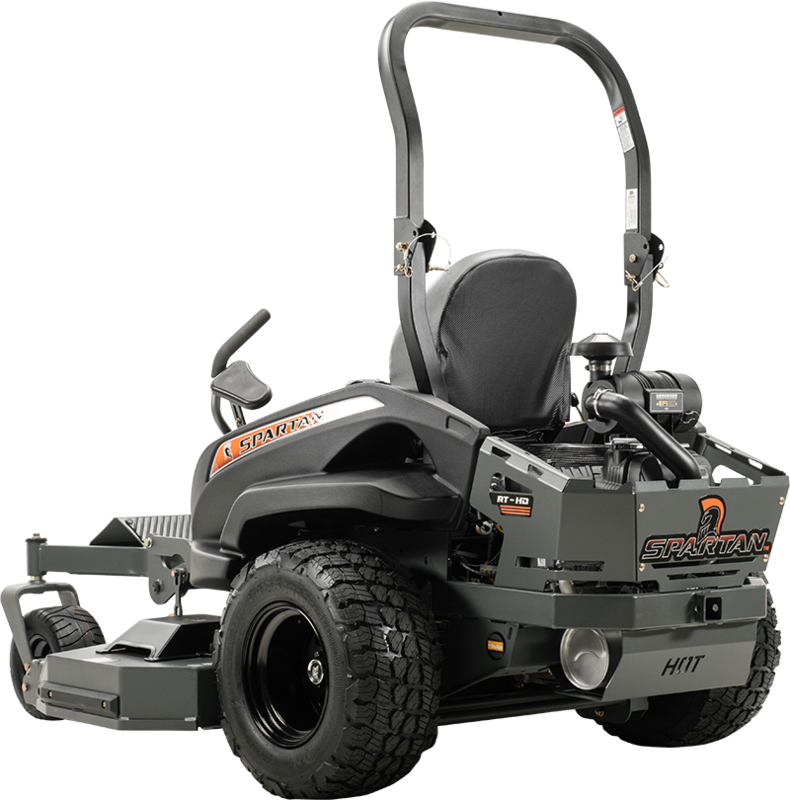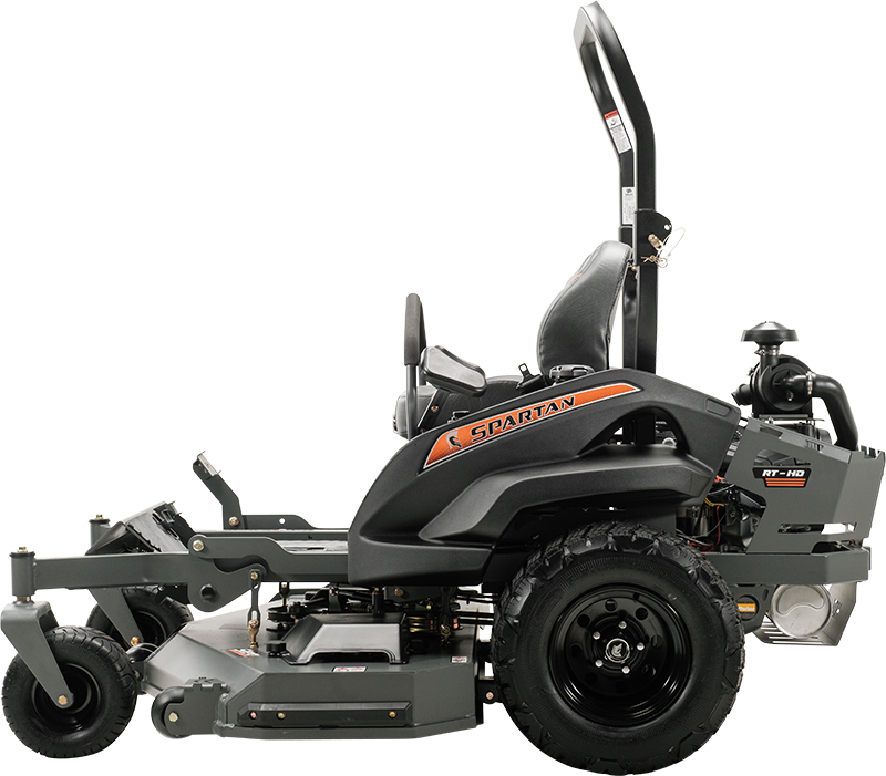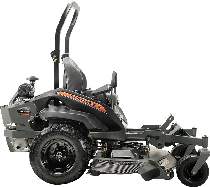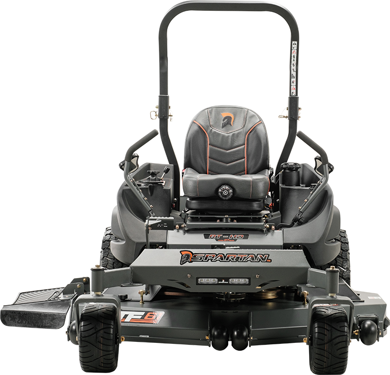 The RT-HD’s conventional design possesses four of the five layers as standard equipment: Radial Tires, TecsPak® adjustments from 100-300 pounds, 360-degree Seat Platform Dial Adjustable Suspension Seat. Three mower widths, 54″, 61″ and 72″, and three strong engine options make this Spartan’s best value zero turn commercial mower.