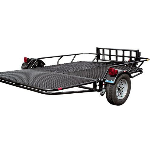 Whether your towing your favorite toys or doing hard work, the Kendon Folding Utility Trailers get it done. The flat deck trailer is a total of 6 ft. x 9 ft. of heavy-duty expanded metal and is strong enough and large enough to carry ATVs, UTVs, SXSs, golf carts, appliances, wood, building materials, or just about any other cargo you need to haul. Best of all, the Utility trailer takes up so little space in the garage you’ll forget all about it – until you need it again.