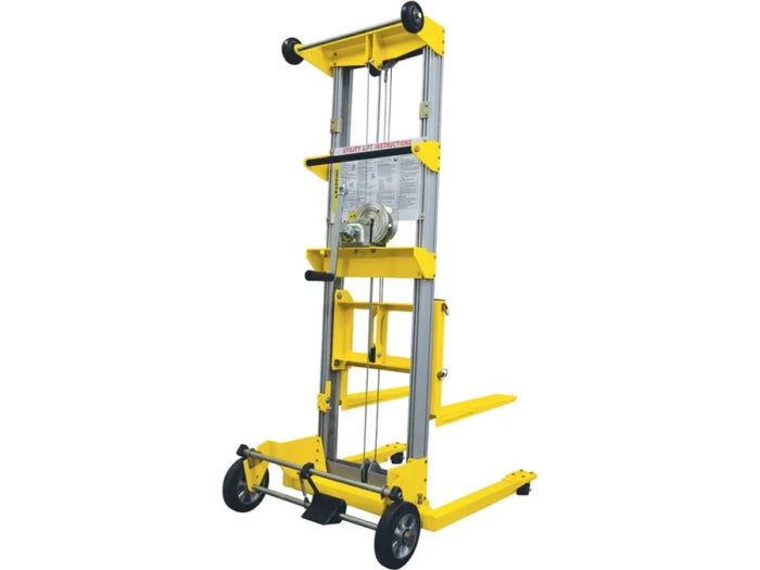 FEATURES: • 10 ft Lift Height • 400 lb Capacity • Can be stowed away in reduced space • Lift is mobile and easily transportable • Forks are reversible • Includes 5 in wheels to handle rough terrain