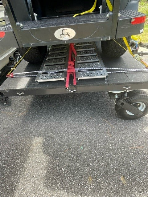 The Swivelwheel-DW58 Tandem Tow Dolly allows the user the ability to flat tow a vehicle up to 6000 pounds and carries up to 1200 lbs. The DW-58 Tandem Tow system requires the use of the dual point rotational hitch bar assembly that comes standard. The rotational hitch bar pivots from the back for road and entrance transitions, it also twists left to right so both wheels stay on the ground at all times. The DW-58 will accommodate Motorcycles, Golf carts, Trikes, and Can-Ams, and Spyders. The DW-58 can also use the 6″ extension this will allow you to extend the deck size.