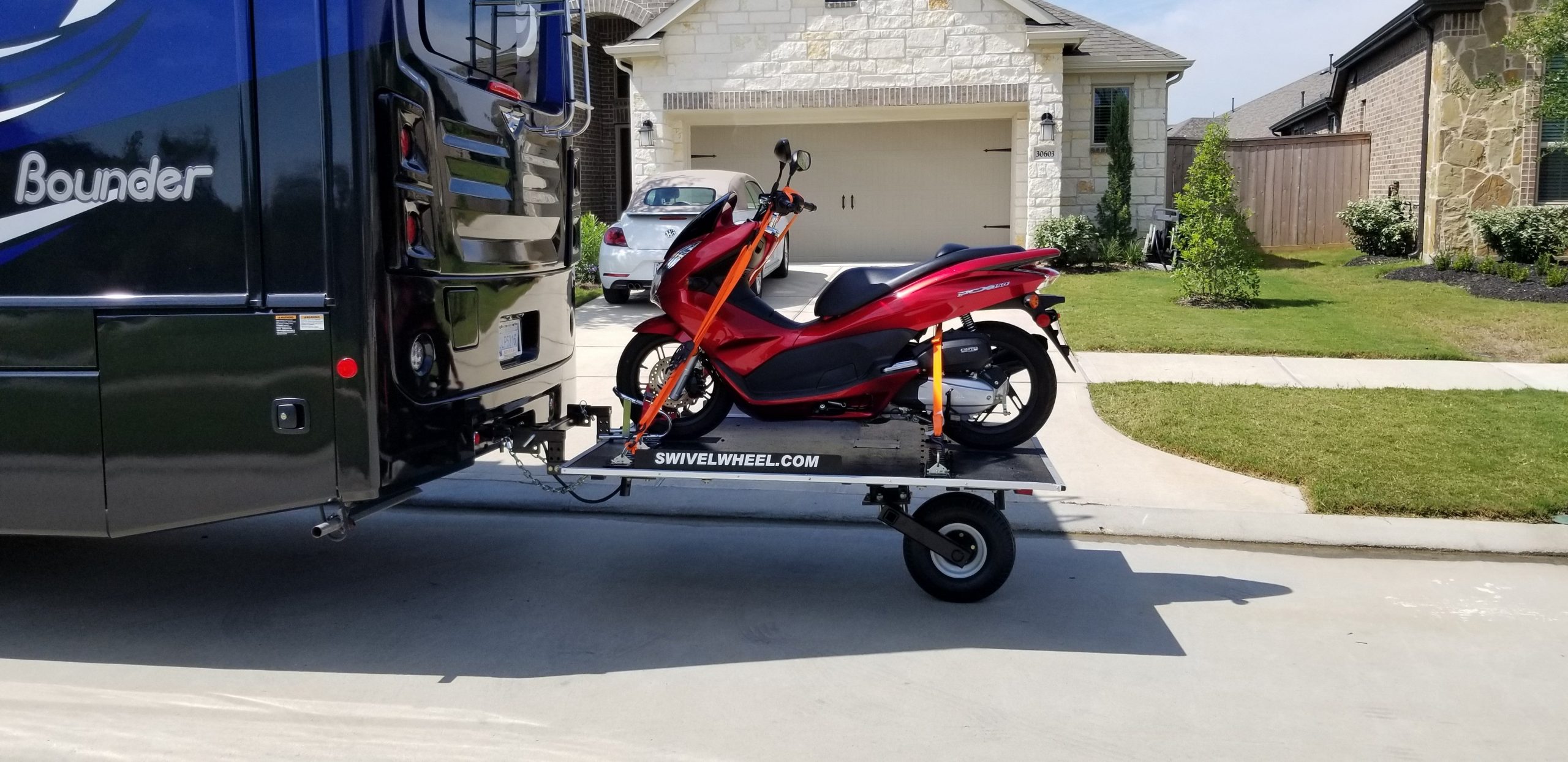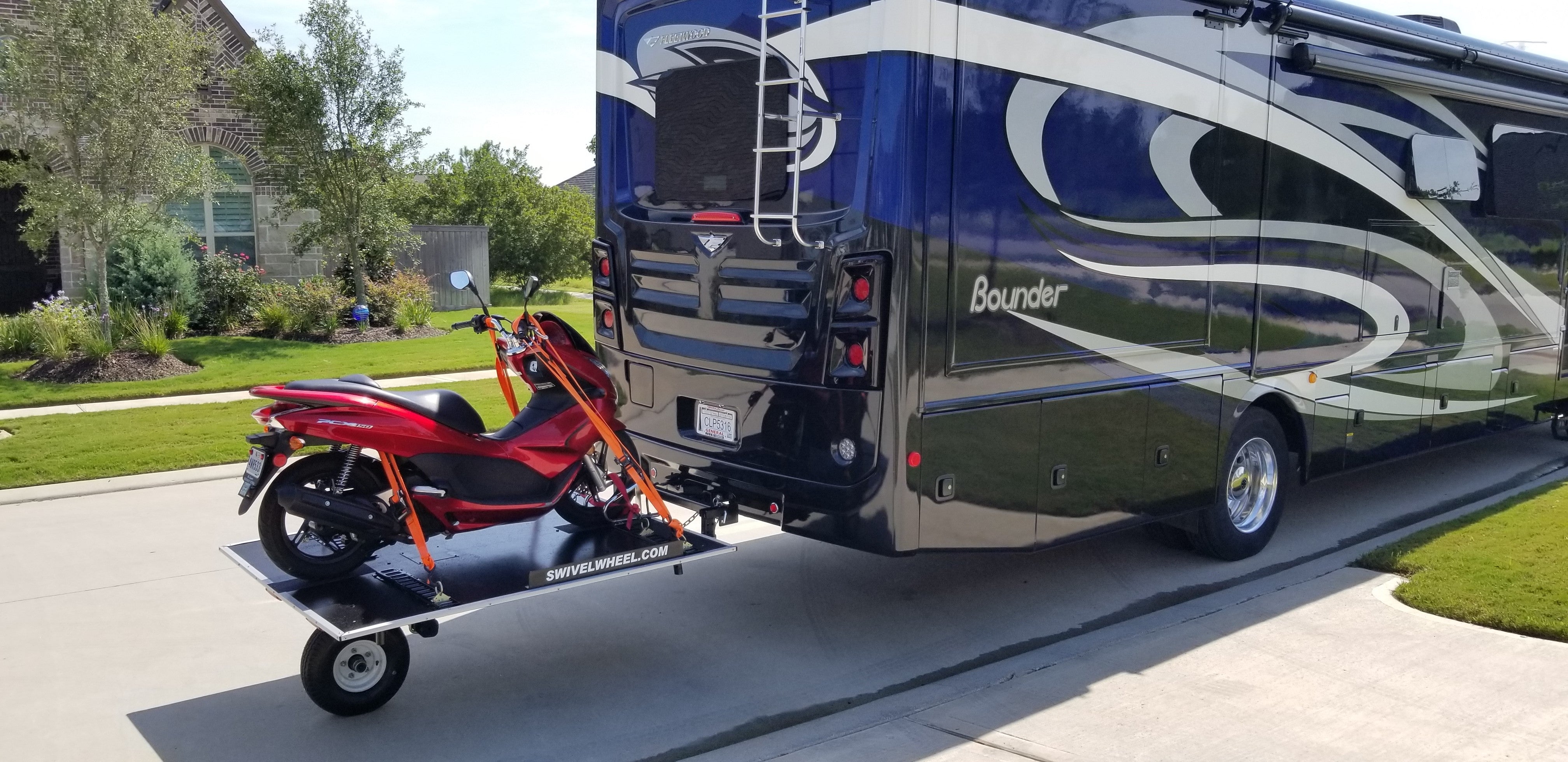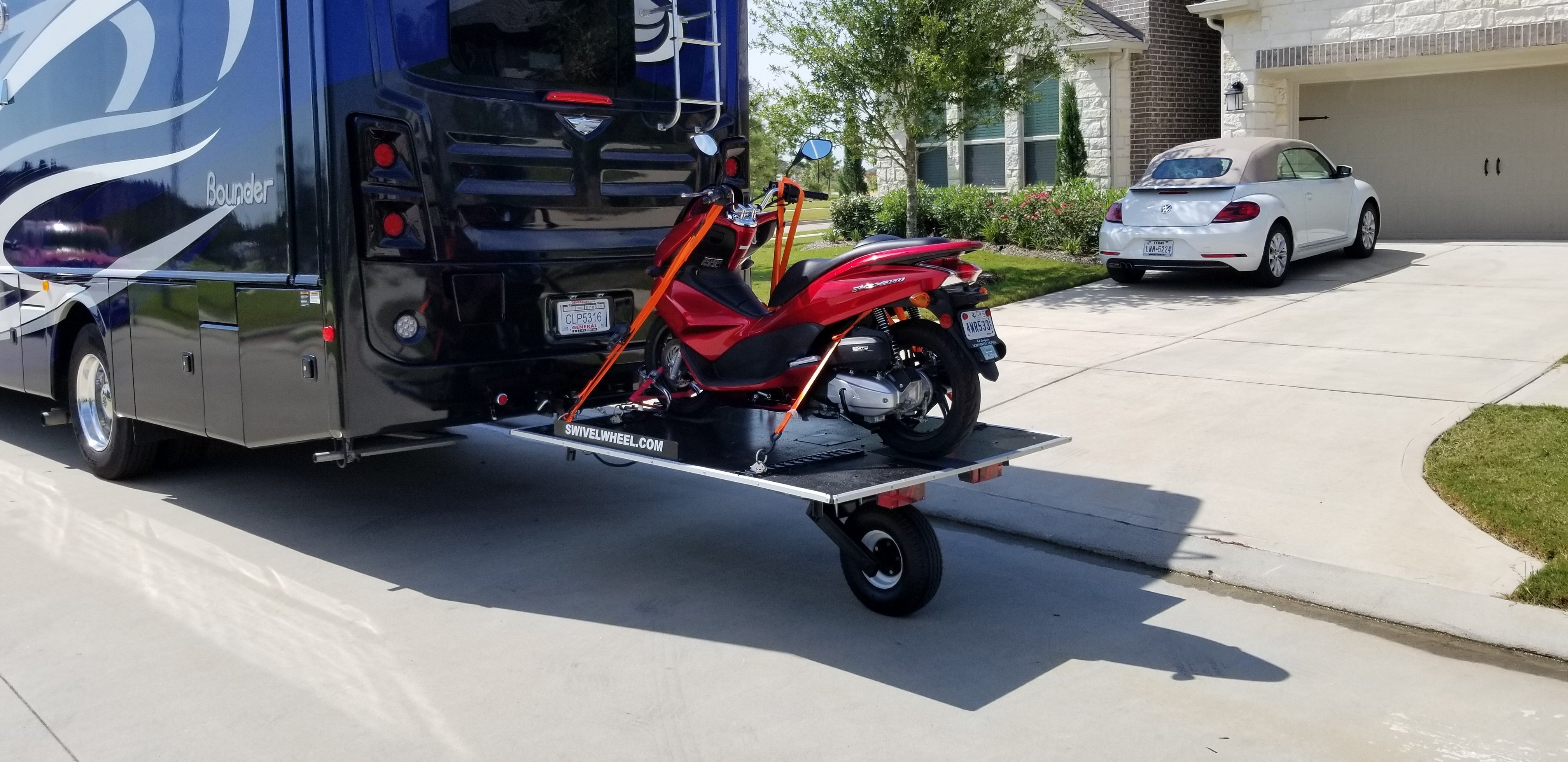 We always inform the customer of the requirements of the tow vehicle. The Swivelwheel was designed for fifth wheels trailers and motor homes(Class A, B, and C) coaches. – NOT DESIGNED FOR TRAVEL TRAILERS
