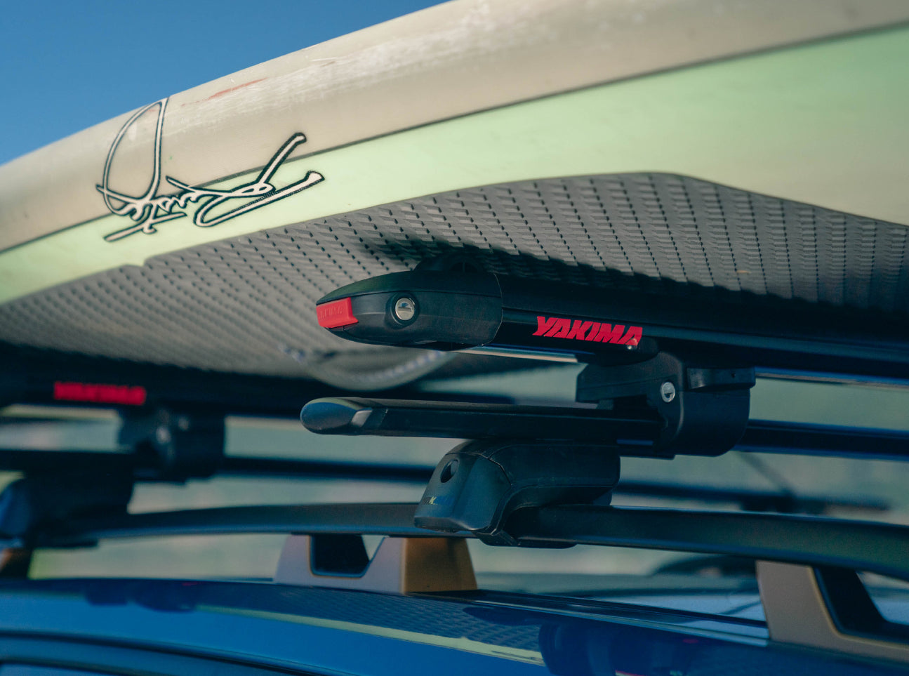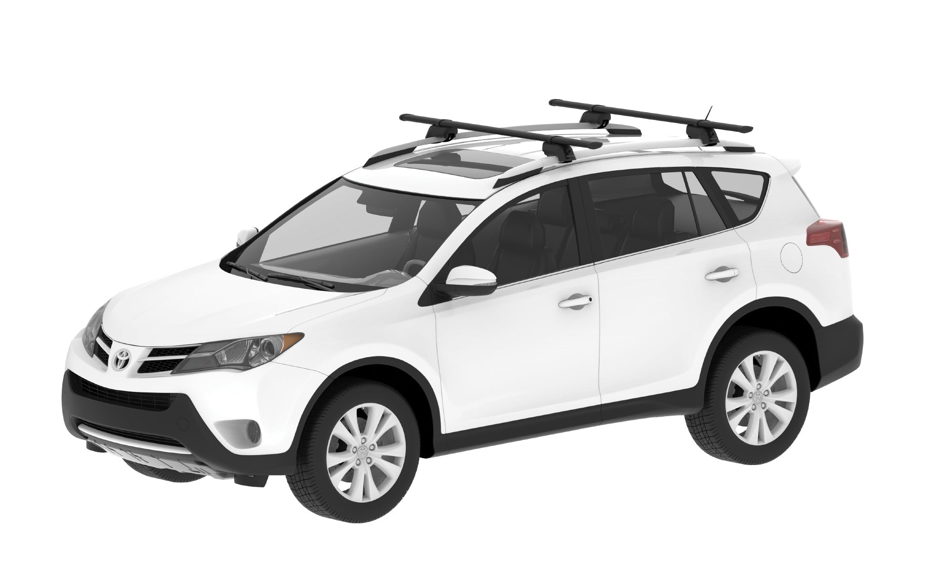 Roof rack system for vehicles with raised side rails. Attaches to the vehicle with integrated steel bands that wrap around the side rails.