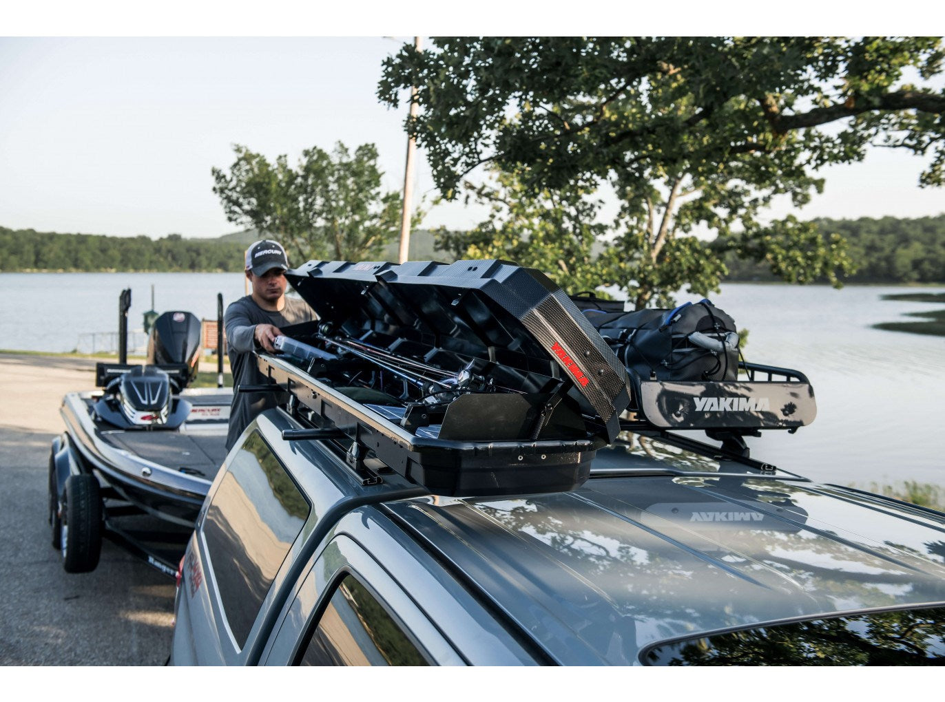 Ready to go when the fish are biting, the TopWater™ is a purpose-built, enclosed fishing rod box— keeping you prepared to hit the water with up to 8 fishing rods, up to 8 ft. long, fully rigged, organized, and out of the vehicle. From spin to bait casting to fly rods, the protective foam pads and retention straps keep rods and reels safely suspended in place without getting banged around or entangled. The space below your rods makes room for low-profile tackle boxes or other wet gear. Made in the USA, this strong and rugged fishing rod box locks your gear with an included Yakima® SKS (Single Key System) lock. For added ease, the universal attachment secures the TopWater to nearly any roof rack or Yakima’s EasyRider™ and RACKandROLL™ trailers.