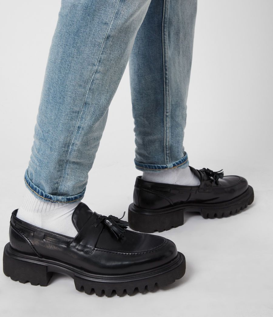 The Vine Loafers. They’re crafted from smooth leather, with a chunky rubber sole and tassel detailing. They go perfectly with our cropped trousers.
