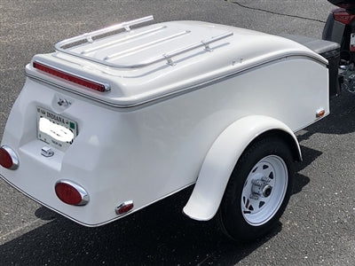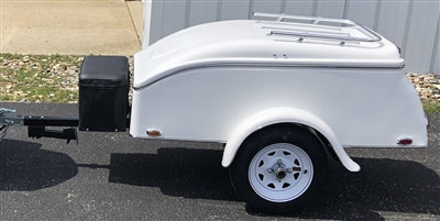 This cargo trailer can hold 24 cubic feet of storage. Our cargo trailers are designed to be extremely lightweight made of hand laid fiberglass. Hand laid fiberglass is woven fabric layered and soaked in polyester and epoxy resin. When cured it creates a very stiff, durable, and light weight material. The reinforcement is done by hand and checked for quality to ensure all sides are uniform.